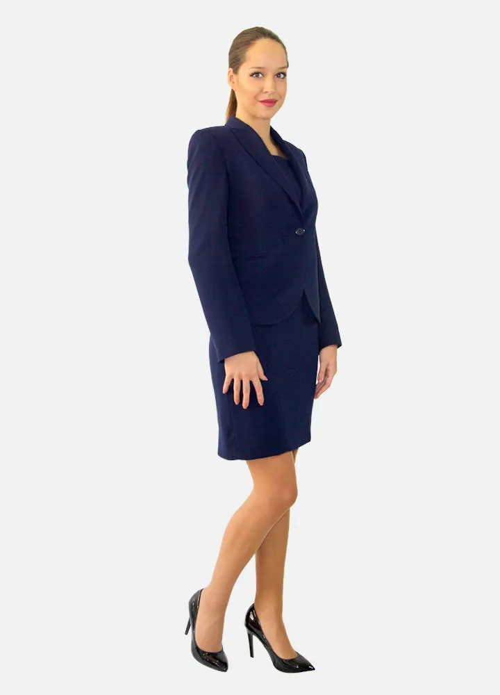 • Veste marine cintrée, deux poches passepoilées. Fermeture un bouton.