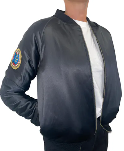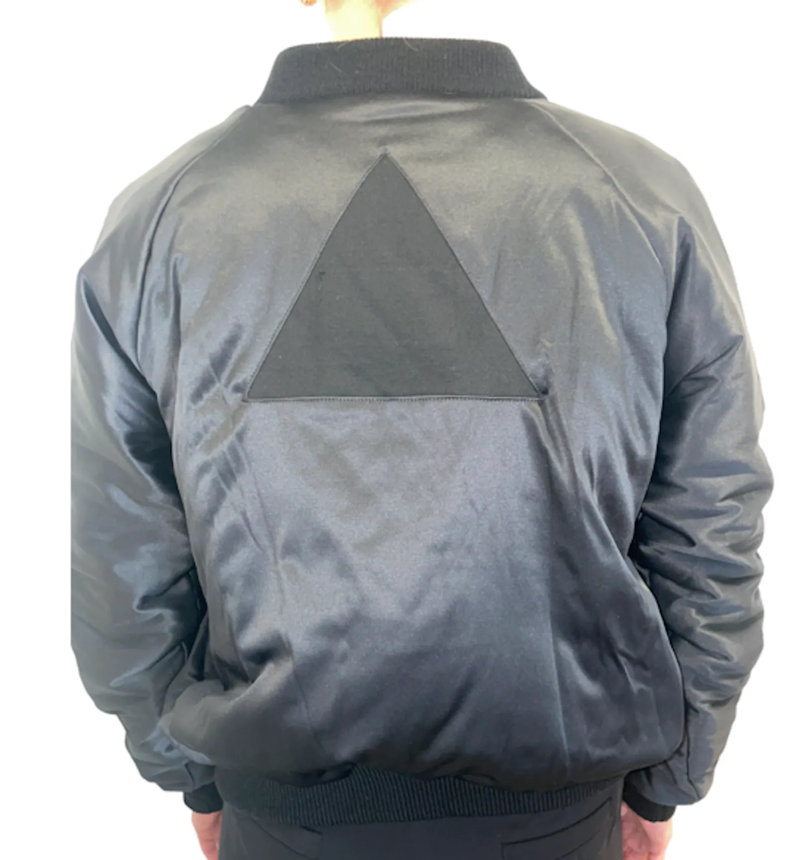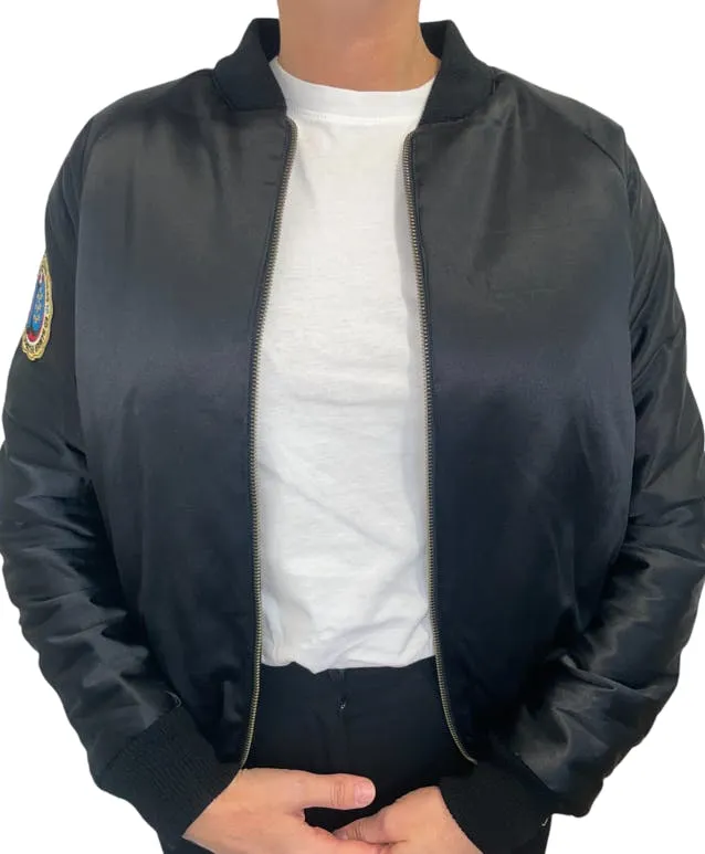 • Blouson bombers noir satiné. Fermeture Zip..