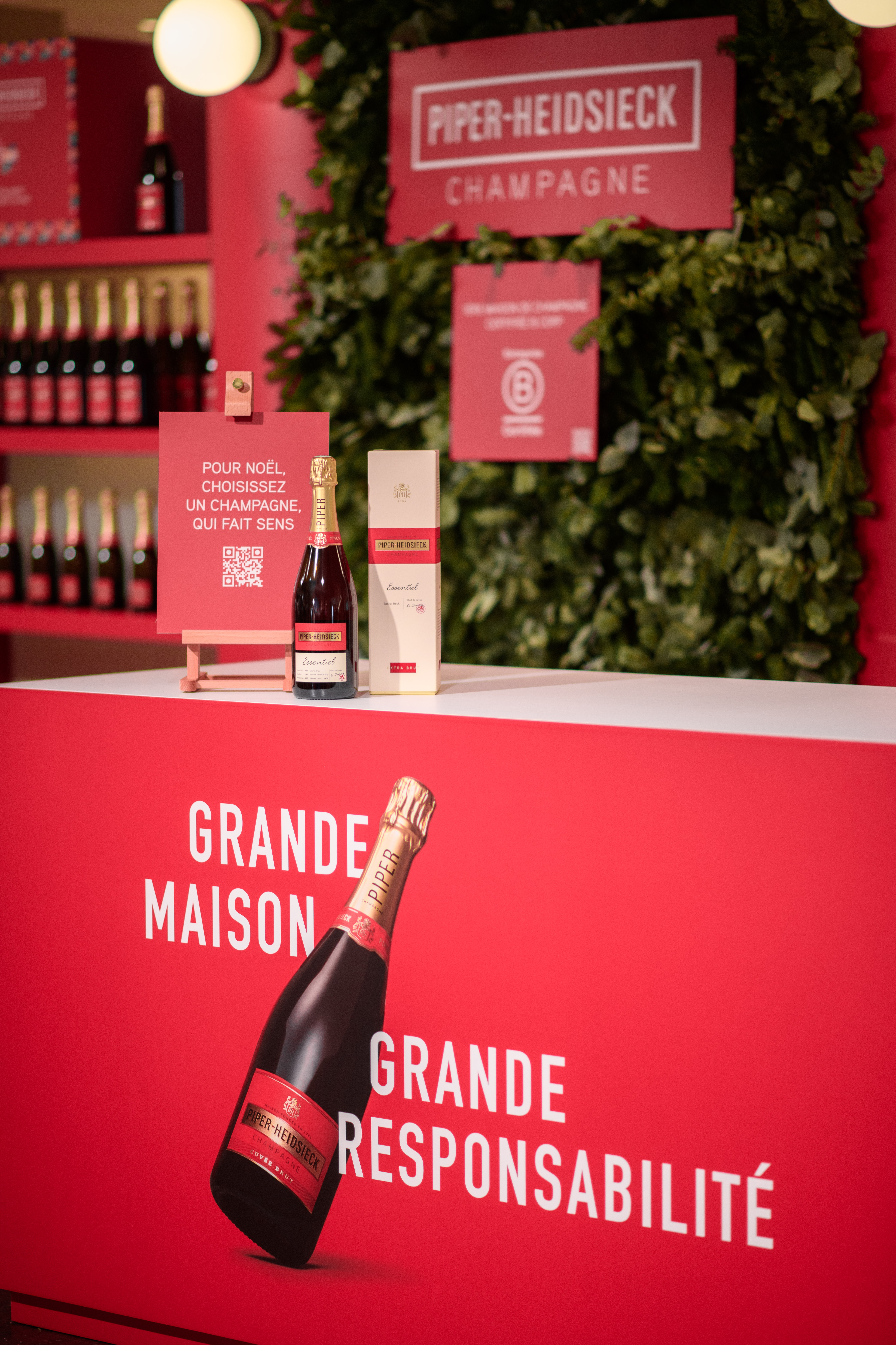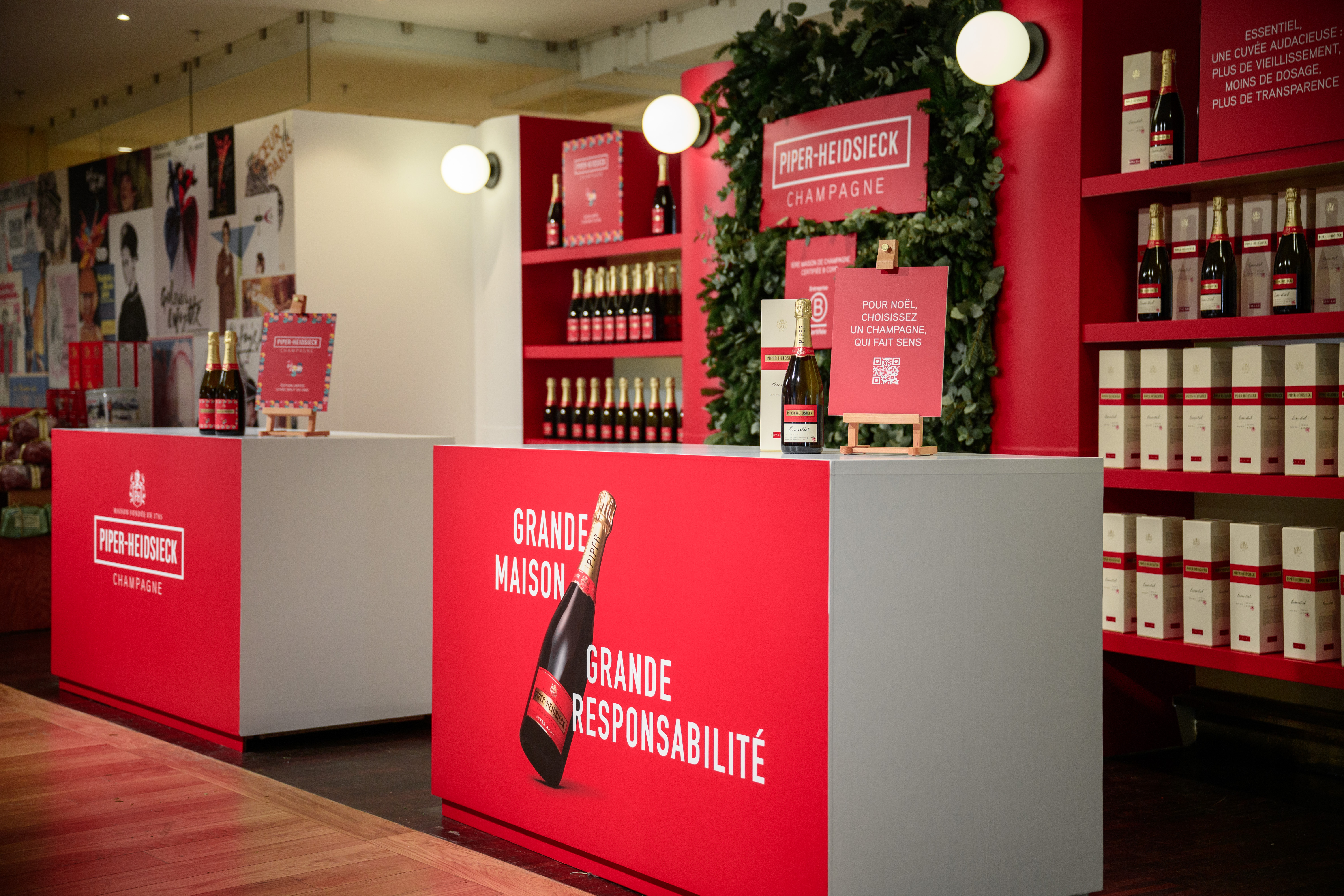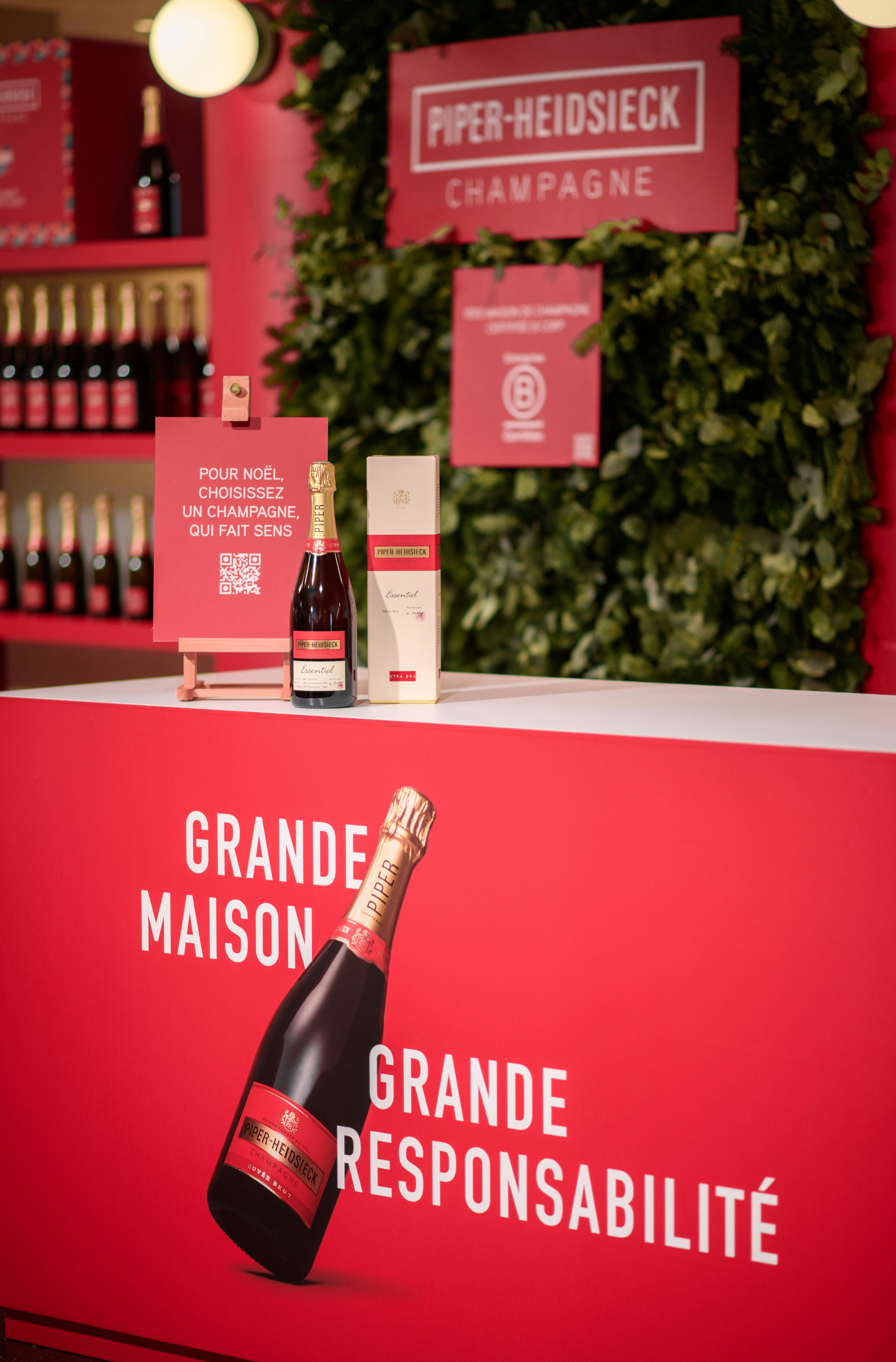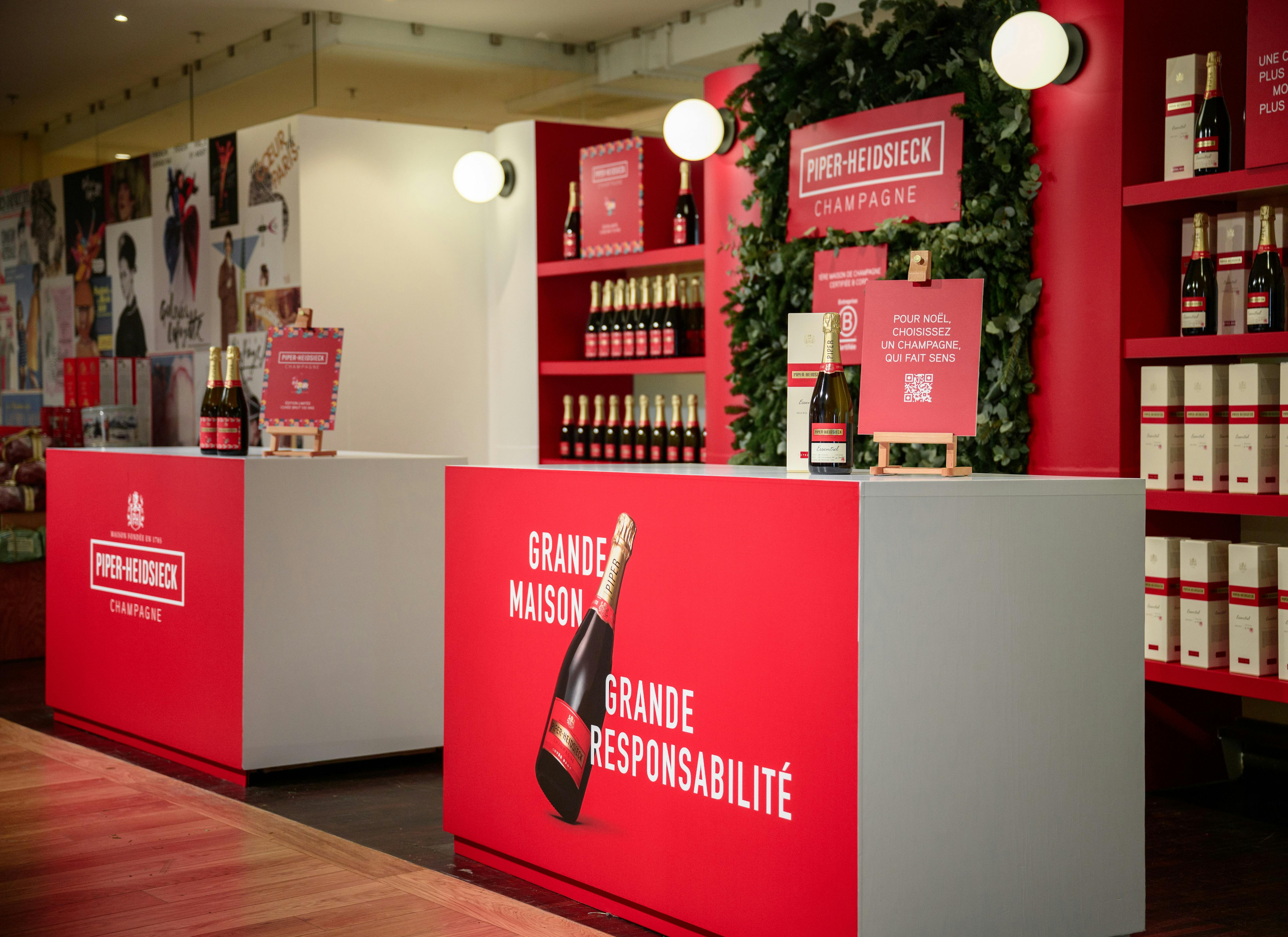 Du 14 décembre au 2 janvier, la maison de champagne s'est installée au 6ème étage des Galeries Lafayette Haussmann à Paris pour célébrer cette période festive. Halloween Agency a conçu un pop-up premium, élégant et végétalisé, en parfaite harmonie avec la nouvelle plateforme de communication de Piper-Heidsieck, "Twist the Script", ainsi que son engagement B Corp. Pour l'occasion, une édition spéciale de la cuvée brut a été créée en l'honneur des 130 ans des Galeries Lafayette, accompagnée d'animations exclusives de personnalisation des bouteilles par des calligraphes les 14, 20 et 21 décembre.