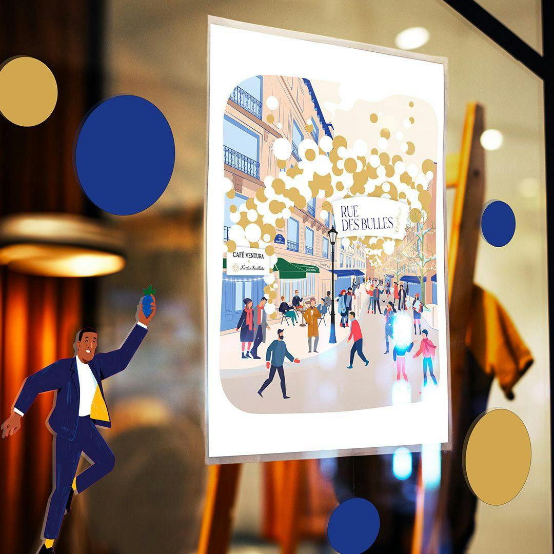 Notre idée : Halloween a mis en place la création d'une "signature événementielle" en collaboration avec Nicolas Feuillatte. Cette signature se matérialise à travers l'événement annuel "Rue Des Bulles", organisé dans différentes rues parisiennes depuis trois années.