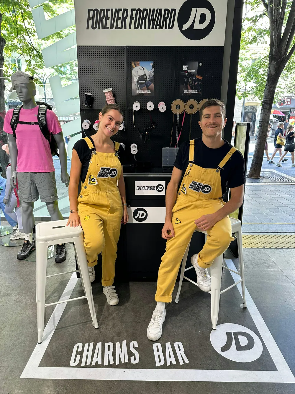 Nous avons imaginée un concept engageant autour d’un jeu concours exclusif avec des “casiers JD”, renfermant de nombreux lots à gagner : outfits complets, chaussures, chaussettes, goodies et bien plus encore, combiné à une expérience de personnalisation au Charms Bar pour affirmer son style dès la rentrée.